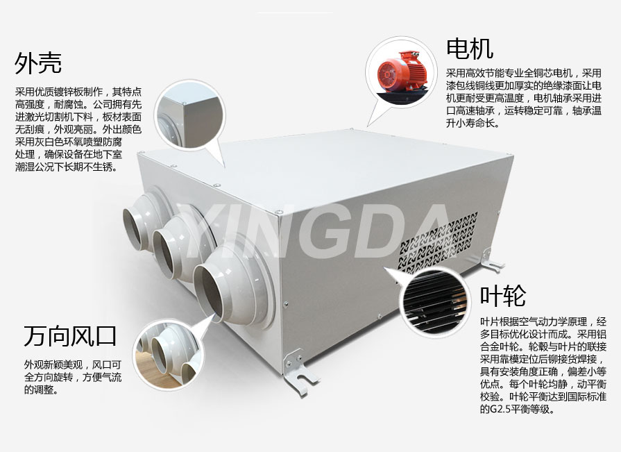 英達風(fēng)機采用優(yōu)質(zhì)鍍鋅板制作,其特點高強度,耐腐蝕。公司擁有先進激光切割機下料,板材表面無刮痕,外觀亮麗。外出顏色采用灰白色環(huán)氧噴塑防腐處理,確保設(shè)備在地下室潮濕公況下長期不生銹。