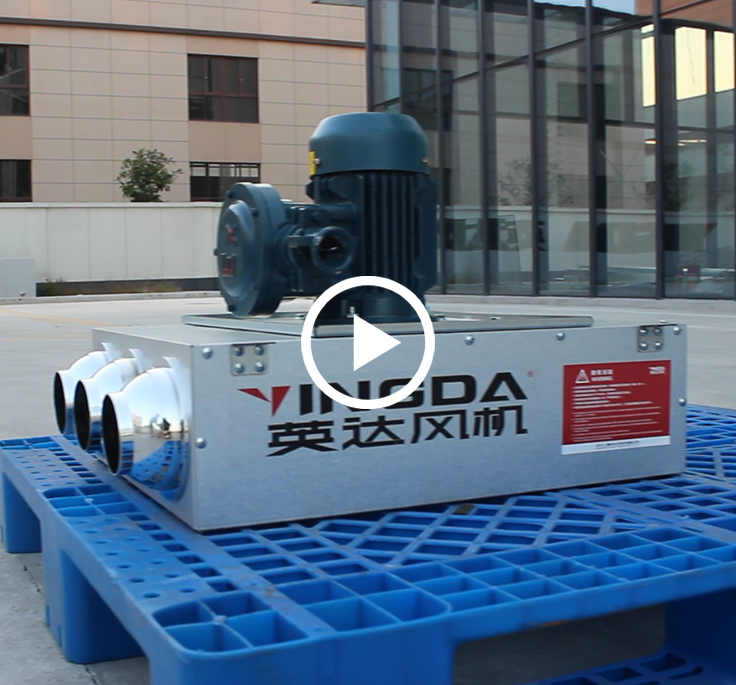 1.1.YDF型誘導(dǎo)風(fēng)機主要用于無風(fēng)管條件下,將多臺誘導(dǎo)風(fēng)機按一定距離和方向依次排列,以少量高速噴流氣體帶動誘導(dǎo)周圍靜止的空氣,達到高效經(jīng)濟的通風(fēng)換氣效果。也可單獨布置在通風(fēng)死角區(qū),通過誘導(dǎo)風(fēng)機高速噴流達到稀釋廢氣作用。